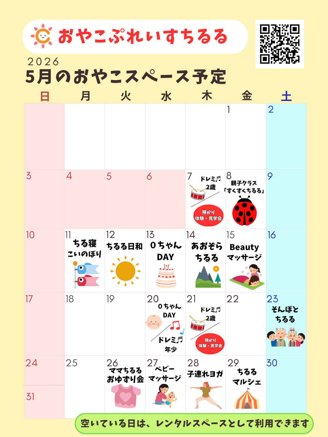 2026年5月の予定をお知らせします。気になるイベントの予約はお早めに!